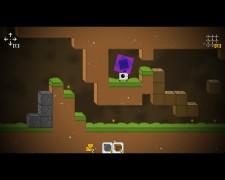 The goal of each level is to reach a portal to escape to the next one. Since the amount of blocks available on each level is finite, you’ll spend most of your time trying to work out arrangements of blocks that will allow you to reach various parts of the board while still remaining accessible to be collected again. Since you’ll earn a star if you reach the exit with enough spare blocks, block economy is an essential skill. Each level also has a chest. It is usually tucked in an out-of-the-way place, and typically requires either some very fancy footwork or very careful thought to retrieve. Doing so will earn you a Block That Matters, a small cube representing important indie and not-so-indie titles that prominently feature blocks or blocky graphics.
