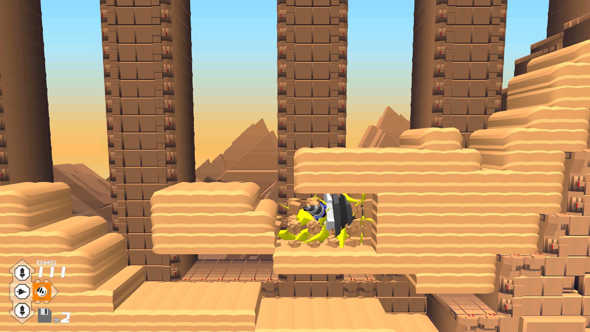 The graphics for Megabyte Punch are fairly low-poly and low detail by modern standards. In the press build there is nothing but solid colors and blocky architecture, making the whole of the universe seem almost like it had been built from Lego. That might count as marks against many games, but it is clear that this graphical style was very much by design. The setting is one entirely populated by robots, or more accurately digital lifeforms. This is very much the world they would build and live in. Not only that, but despite the lack of complexity there is no lack of diversity. The game harkens back to the NES era in a few ways, not the least of which is in the worlds you battle through. There’s an ice world, a desert ruin, a creepy night world, and even a fortress. You could easily envision Mario hopping his way through these familiar settings.